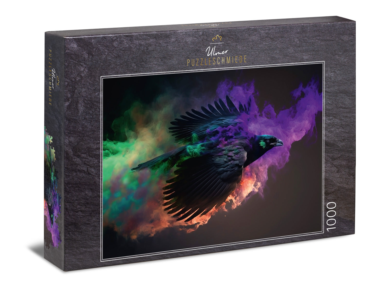 Puzzle 1000 Teile „Schattenflieger“ – mystischer Rabe im farbigen Nebel. (NEU: Lieferbar Anfang Mai 2026)